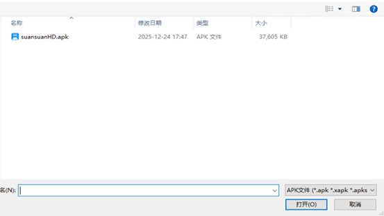 - 在打开的选择窗口选择下载的apk