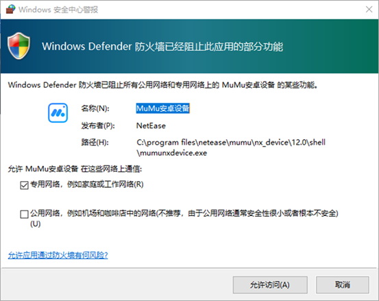 - 注意:Windows防火墙会提示第一次联网的程序。点击“允许访问”即可。